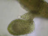 Some weeks later we discovered another small population of this liverwort, again growing over D. aucklandica on the same substrate - peeling teatree bark. This had maturing antheridia and we were able to observe free swimming spermatoid that emerged from a ruptured antheridium.
